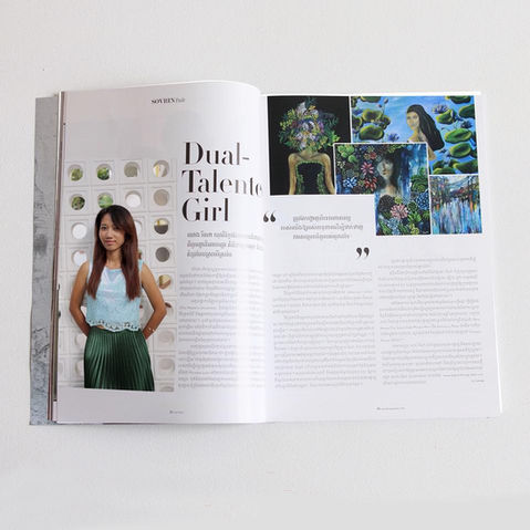 Her first painting exhibition was in 2014 and ever since then she has held six solo exhibitions and two group exhibitions. She has appeared on the Phnom Penh Post, the Cambodian Daily, Khmer Times, AsiaLife Cambodia May 2018 issue, Forward Magazine June 2018 issue, Sovran Magazine July 2018 issue and Cambodge Magazine December 2018 issue.